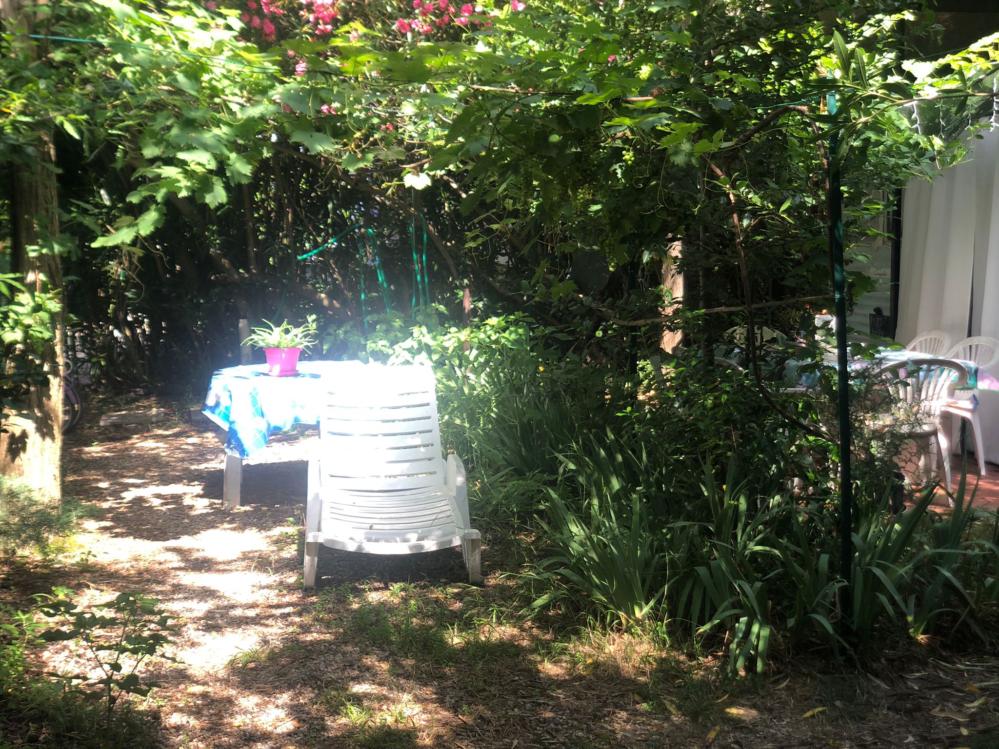 Due bagni, uno con doccia e uno con vasca e asta doccia, lavatrice, ripostiglio, rilevatore di monossido di carbonio, kit pronto soccorso. Privacy e tranquillità, ha la sua area esclusiva di giardino ombreggiata e attrezzata per mangiare, con doccia esterna, appena scese le scale attraversato il vialetto.