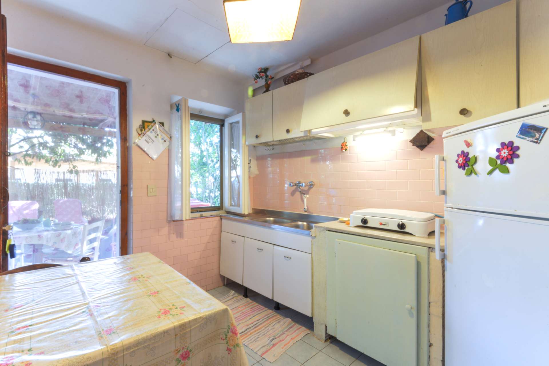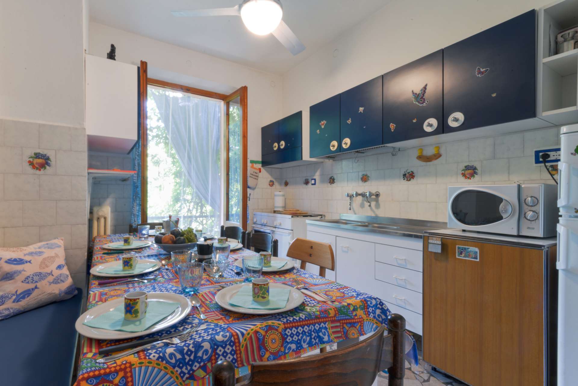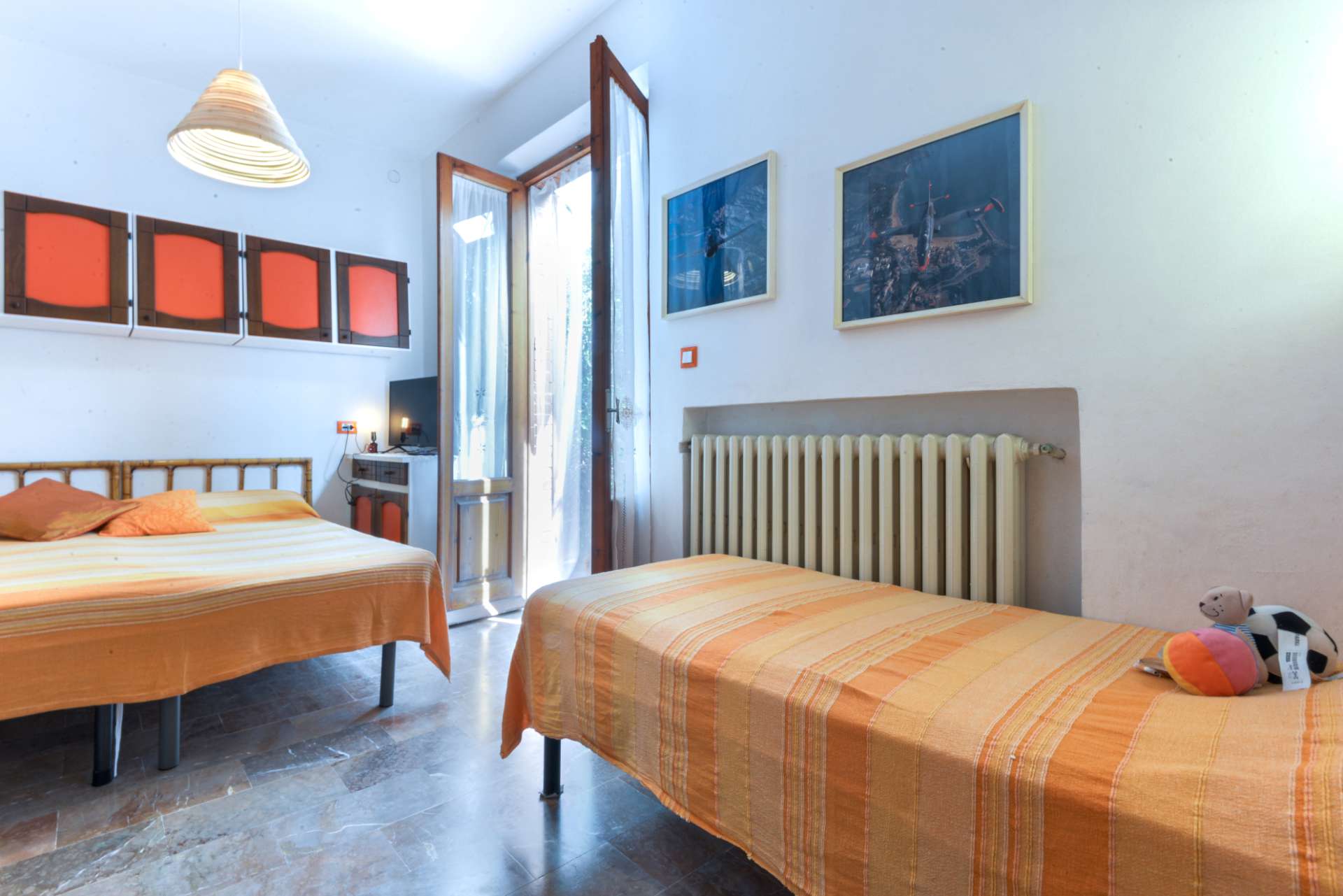 Ampio 98 mq, è ideale per 5-7 ospiti, composto da camera rosa matrimoniale più singolo, camera rossa matrimoniale più singolo, camera arancione letto doppio, cucina attrezzata con frigorifero, 4 fuochi, lavello a due vasche, forno a gas e microonde, tostapane, bollitore e stoviglie.
